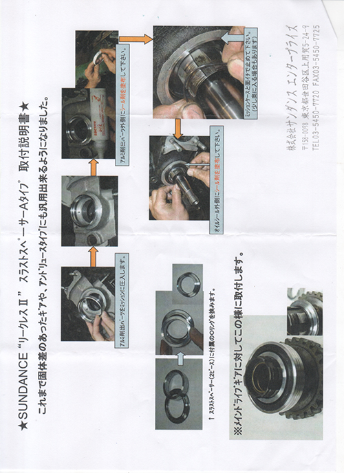 純正のスペーサーと違い、2ピースになり、メインドライブギアの接触面に